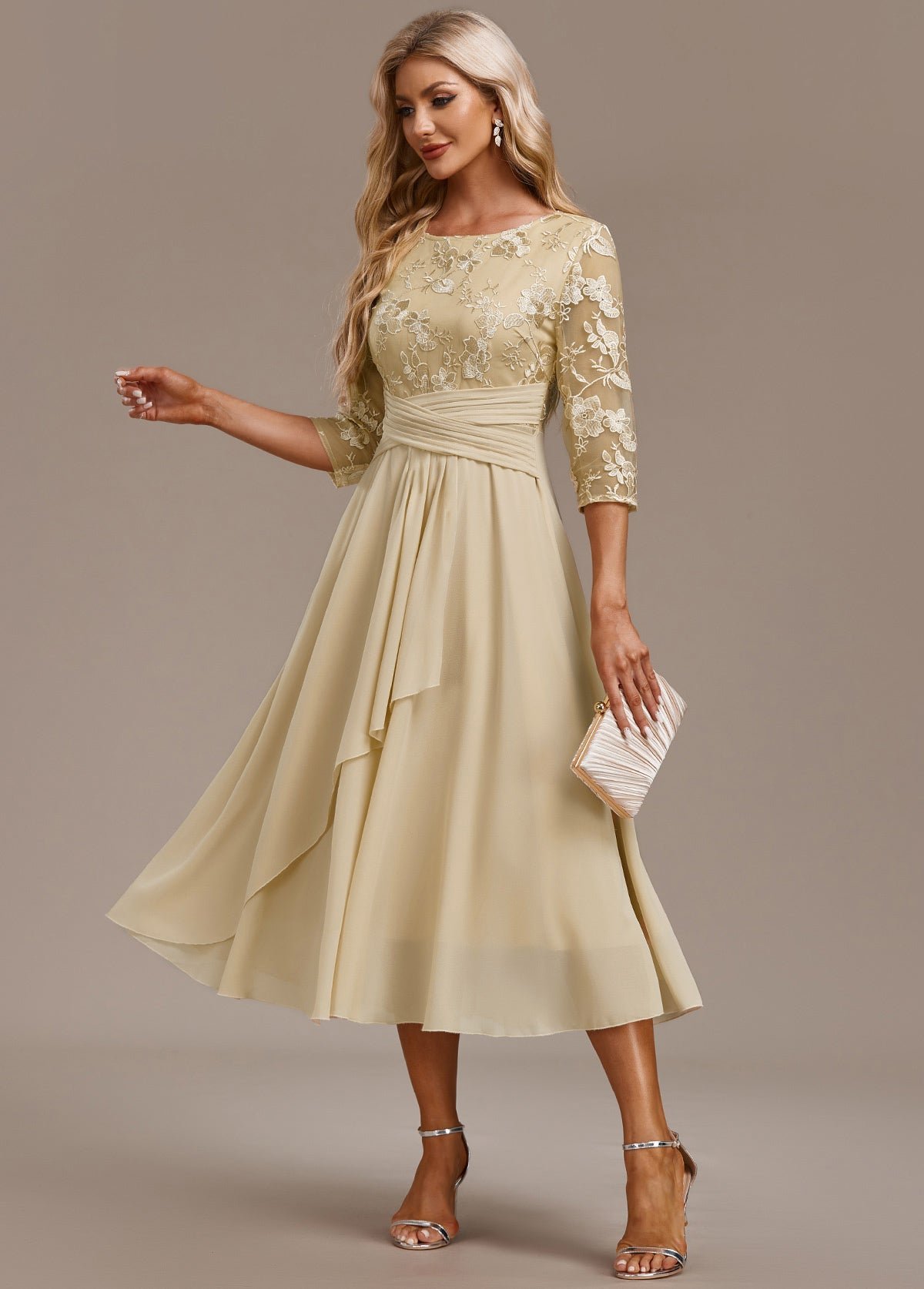 Alisa Champagne Embroidery 3/4 Sleeve Round Neck Dress